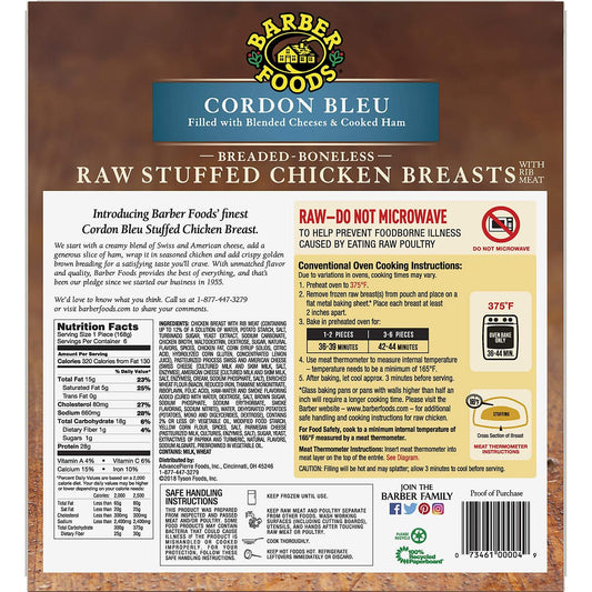 Barber Foods Cordon Bleu Stuffed Chicken Breasts, Uncooked (36 oz., 6 ct.)