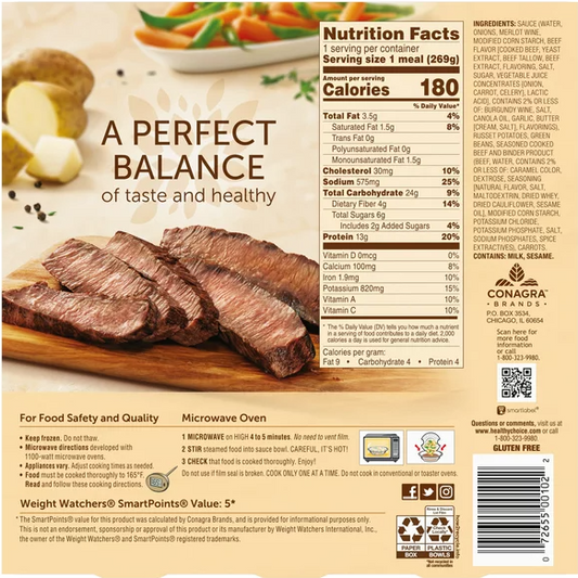 Healthy Choice Cafe Steamers Beef Merlot Frozen Meal, 9.5 oz -- 8 per case.