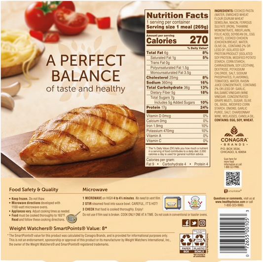 Healthy Choice Cafe Steamers Balsamic Chicken Margherita Frozen Meal, 9.5 oz -- 8 per case.