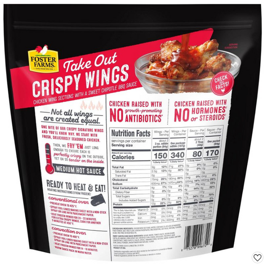 Foster Farms Chipotle BBQ Take Out Chicken Wings 16oz -- Pack of 3