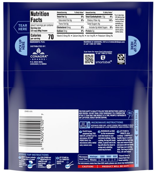Birds Eye Steamfresh Premium Selects Sweet Peas, Frozen, 10 oz -- 10 per case.