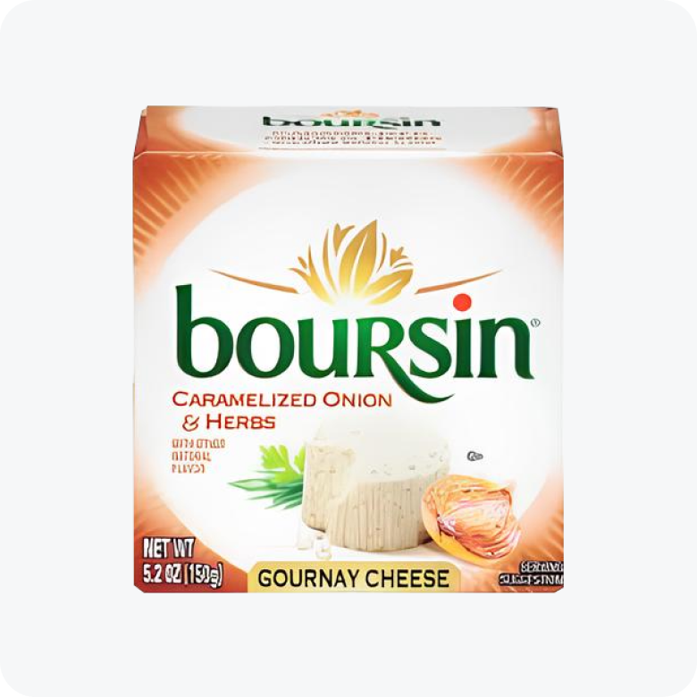 - Boursin Caramelized Onion & Herbs Cream Cheese Spread Puck 5.2oz is a brand new crowd pleaser.
