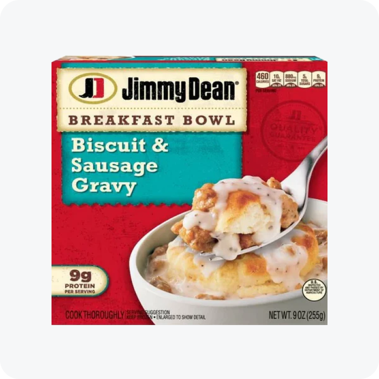- One 9 oz Jimmy Dean Biscuit & Sausage Gravy Breakfast Bowl
